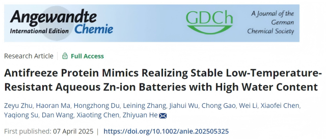 德赢Vwin官方区域合作伙伴团队在仿生抗冻材料助力低温水系锌电池长期运行研究中取得进展